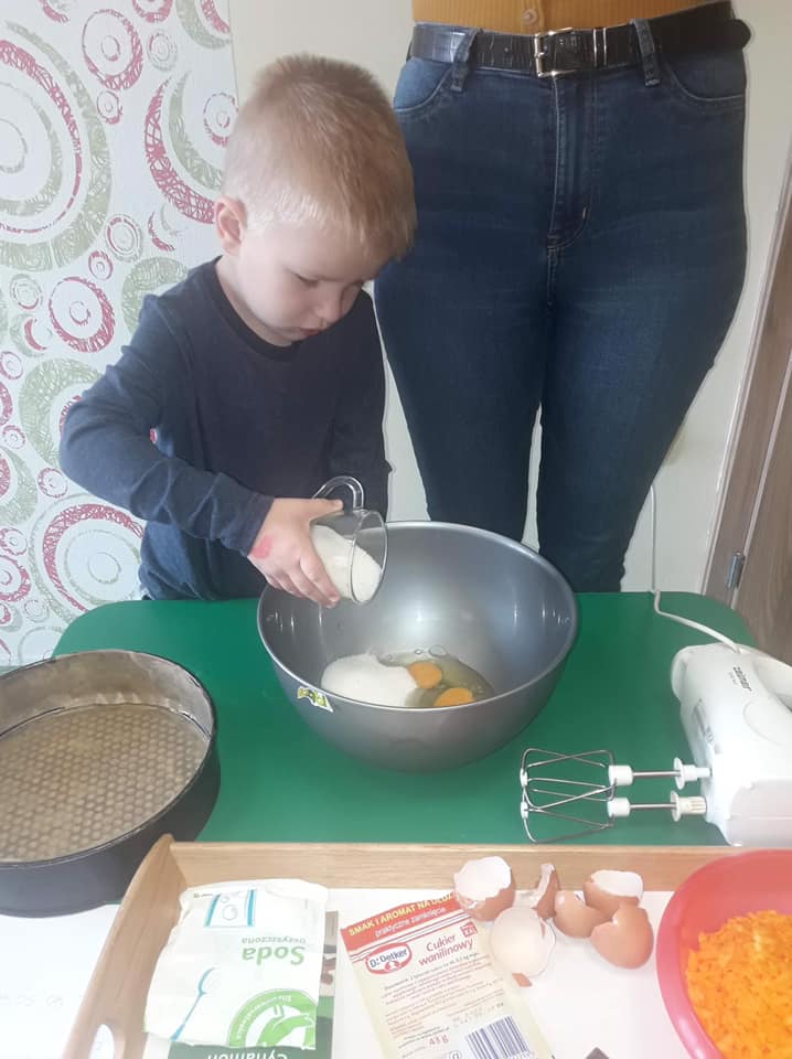 W związku z obchodzonym dziś Świętem Dyni, na dzisiejszych zajęciach z kuchcikowa grupa Sowy 1 oraz Sowy 2 wykonała pyszne ciasto dyniowe .