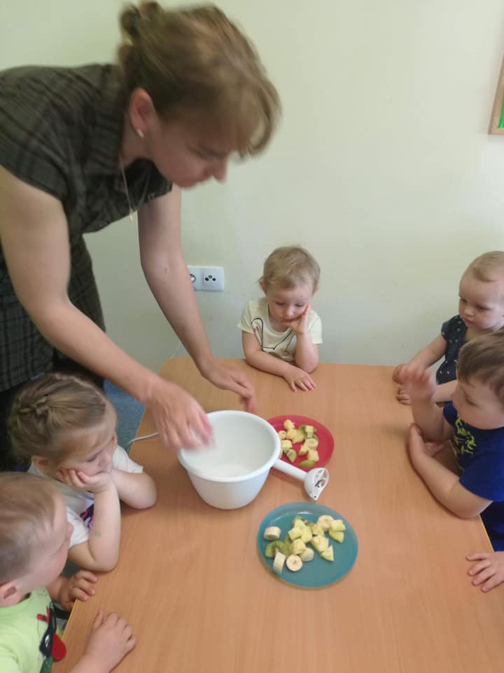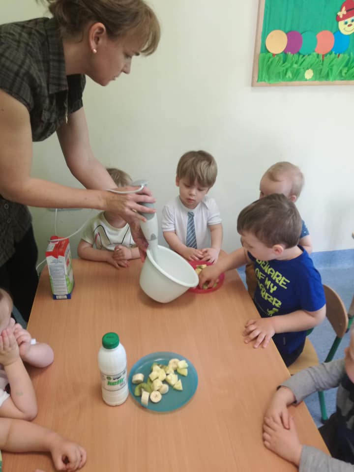 Dziś na kuchcikowie dzieci z grupy Wróbelki zrobiły pyszny owocowy koktajl