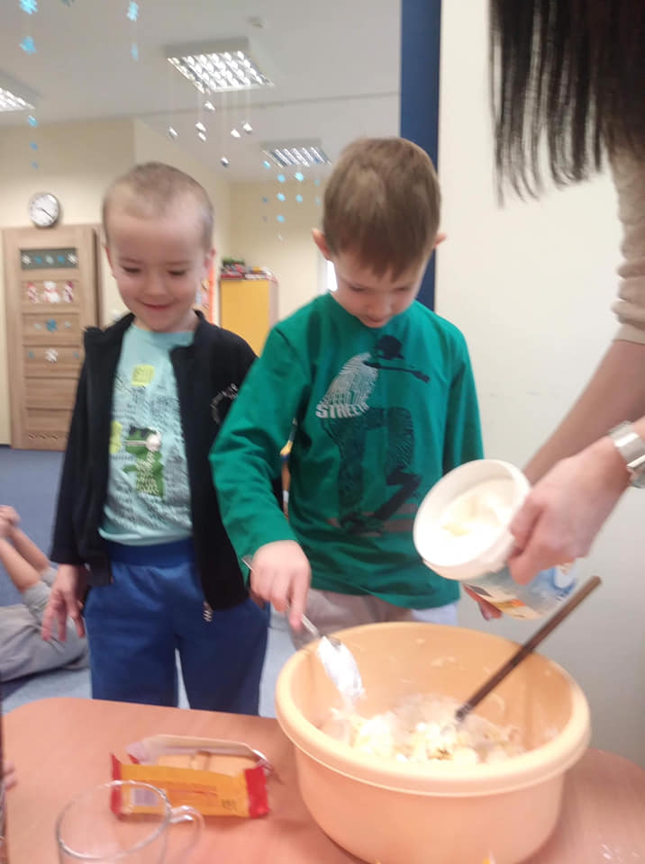 Grupa Sowy 1 oraz Sowy 2 na zajęciach z kuchcikowa wykonała słodką "Chatkę Baby Jagi".