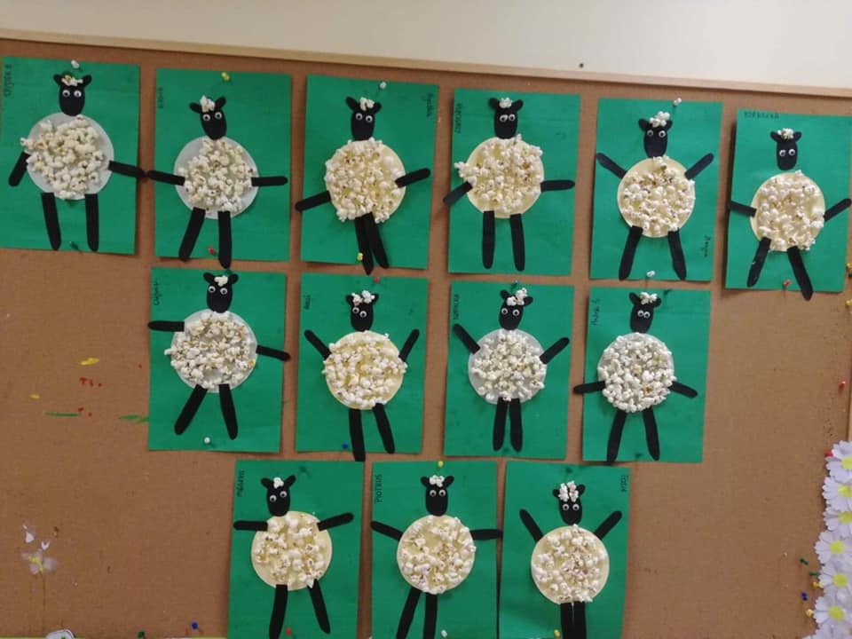 Na warsztatach plastycznych dzieci z grupy Słowiki I i II wykonały owieczki wykorzystując różne techniki plastyczne.